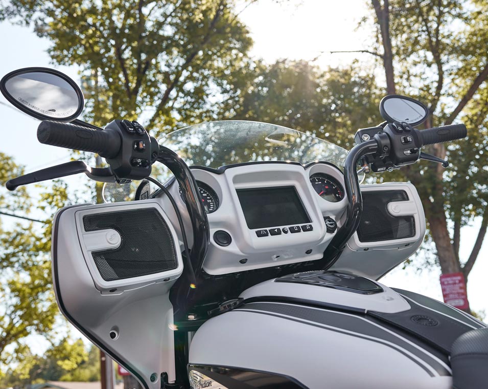 | di serie | Ride Command da 7" con Integrazione Apple CarPlay; Parabrezza Regolabile Elettricamente; Paramotore; Sella in Vinile Rogue; Sistema di Monitoraggio Pressione Pneumatici; Chiusura Centralizzata Borse Laterali (Anche con Telecomando); Tre modalità di Guida: Pioggia, Standard e Sport; Disattivazione Cilindro Posteriore; ABS; Cruise Control; Accensione Senza Chiave; Sistema Audio Premium da 100 Watt con AM/FM, Bluetooth®, USB, Ingresso Compatibile con Smartphone; Porta con Funzione Ricarica 12V. |