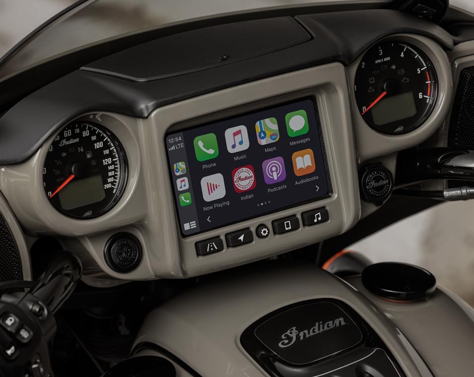 | Infotainment | Ride Command da 7" Full TouchScreen con: Orologio; Temperatura Esterna; Informazione Audio; Stato Bluetooth per Telefono e Interfono; Stato Veicolo (Pressione Pneumatici, Voltaggio batteria, Ore Motore, Cambio Olio); Info Veicolo (velocità, Giri Motore, Autonomia Carburante, Marcia Corrente); Dati di Guida Attuali (Distanza, Tempo di Movimento, Tempo di Sosta, Altitudine, Variazione di Altitudine); Contachilometri Parziale; Selezione Modalità di Guida; Luminosità Schermo; Lettura Codici di Guasto; Integrazione con Apple CarPlay. |