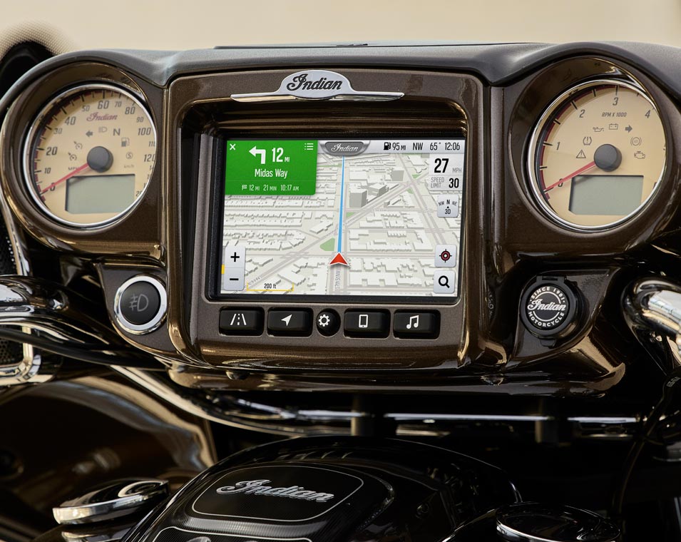 | Infotainment | Ride Command da 7" Full TouchScreen con: Orologio; Temperatura Esterna; Informazione Audio; Stato Bluetooth® per Telefono e Interfono; Stato Veicolo (Pressione Pneumatici, Voltaggio Batteria, Ore Motore, Cambio Olio); Info Veicolo (Velocità, Giri Motore, Autonomia Carburante, Marcia Corrente); Dati di Guida Attuali (Distanza, Tempo di Movimento, Tempo di Sosta, Altitudine, Variazione di Altitudine); Contachilometri Parziale; Selezione Modalità di guida; Luminosità Schermo; Lettura Codici di Guasto; Integrazione con Apple CarPlay. |