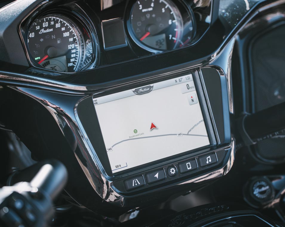 | Ride Command® | Display da 7" installato in fabbrica con navigazione GPS, Apple CarPlay®, connettività Bluetooth®, strumenti configurabili, statistiche di guida e altro |